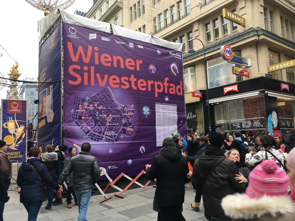 The Vienna New Year’s Eve Trail – Wiener Silvesterpfad – is known to be one of the biggest events on NYE in Europe. It is a trail through a pedestrian only zone made up of several major streets in the city centre, with different stops and activities along the trial, from stations for food, drinks, music and dance, to shopping, speed dating, games and fortune telling. As expected, it was very popular and the trail was already packed with people in the afternoon of the NYE’s day. When I passed this stop showing people how to dance, I couldn’t help but joined the people there to learn a few steps of Viennese waltz. It is conventional to dance Viennese waltz here at midnight when it’s the New Year and everyone does that here. As I witnessed people dancing here at midnight, I was glad that I had learnt a few steps in the afternoon to be part of the tradition.