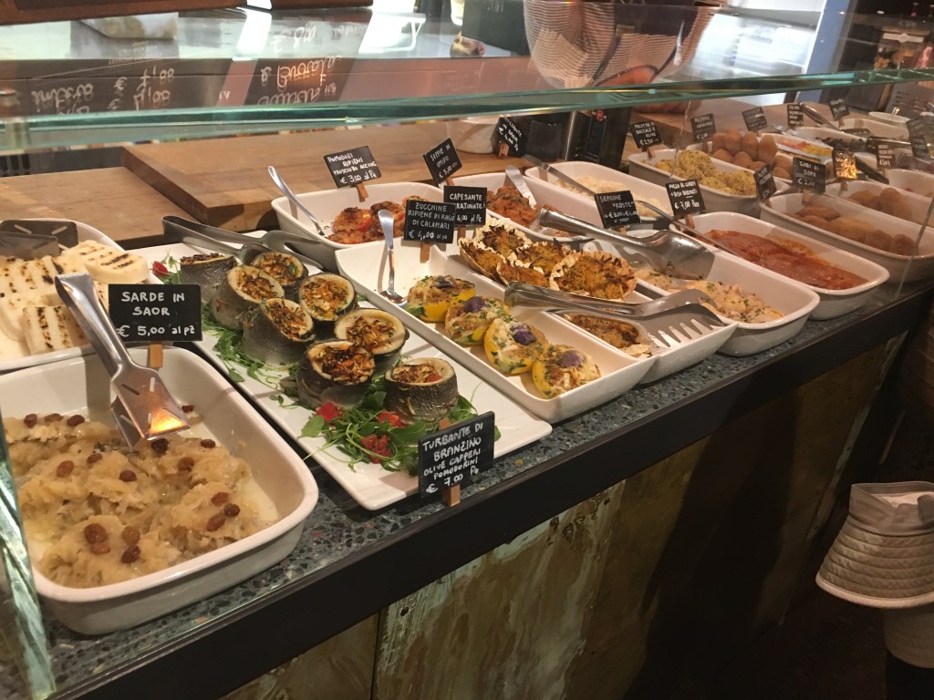 If I may mention one ciccehetti bar, SEPA (Sestiere San Marco 5482 Calle della Bissa in Venice) was a very nice place with reasonable prices. The place was modern with plenty of interesting and delicious ciccehetti. No wonder it was popular when we were there. Even if you have trouble looking for it, there are plenty of good ciccehetti bars in the area, so finding some nice ciccehetti should not be too difficult.