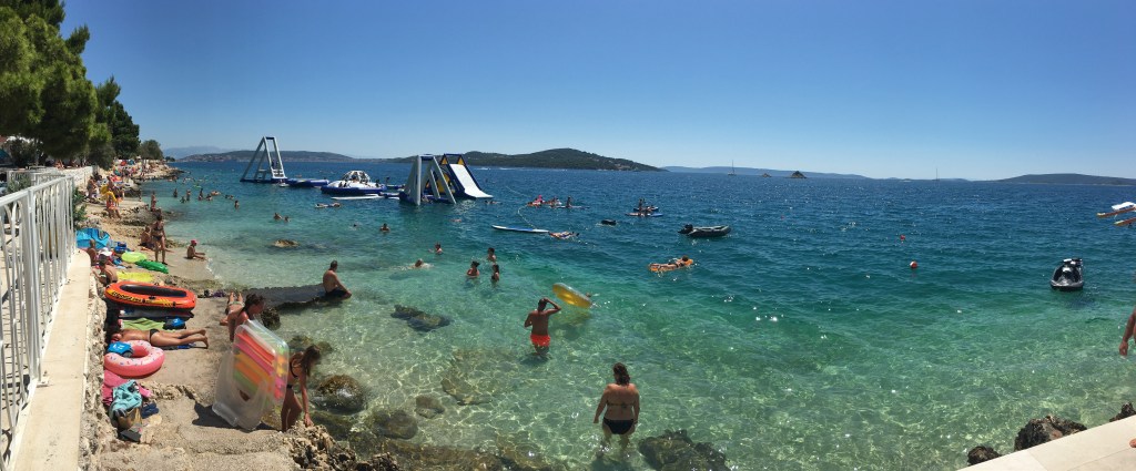 We continued our drive towards the coast after the national park visit. After all, Croatia is known for its long coastline. The next campsite we booked, Belvedere, was right at the coast with its own beach. It was meant to be a few nice days of beach vacation. The campsite has all the facilities you need, from toilets and showers to shops and restaurants. It was also a very busy campsite and the beach was full of people. Croatia is clearly a popular summer destination.